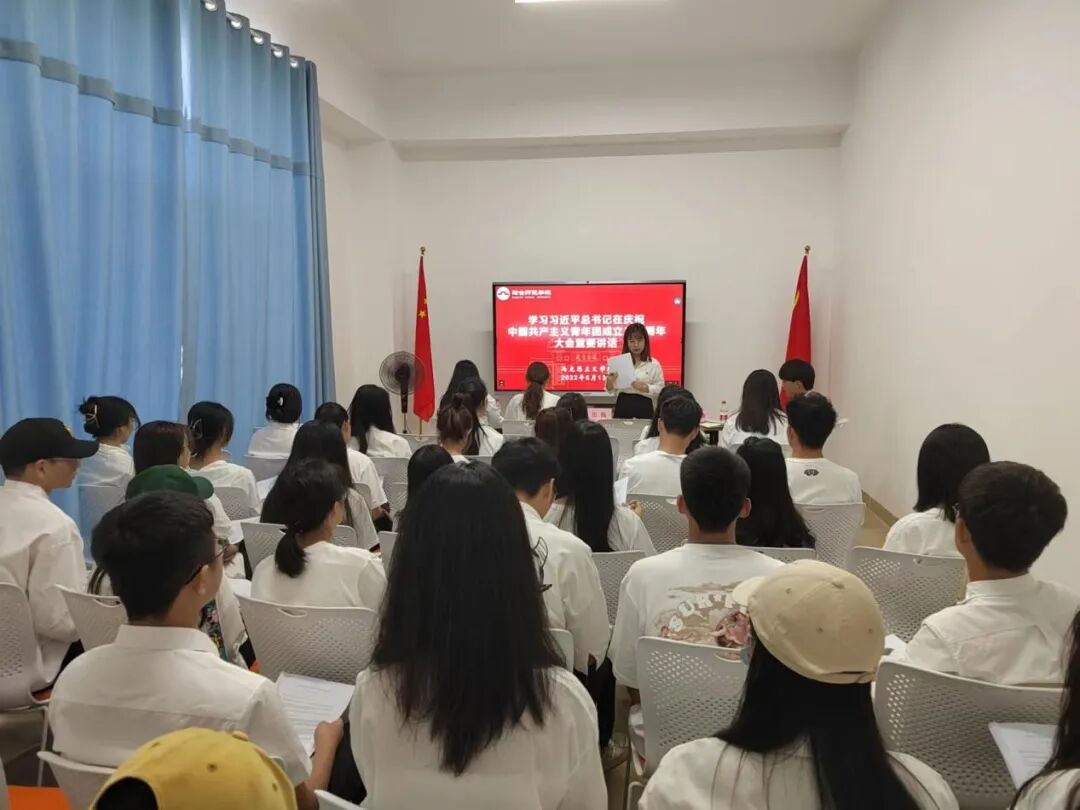 2022年5月13日,我院于培训楼206教室开展习近平总书记在庆祝中国共产主义青年团成立100周年大会的重要讲话及海南省第八次党代会专题学习会。我院团委学生会主席常鲁豫主持会议,团委书记田佩,团委副书记宋宜蔓,团委学生会副主席彭寒梅,全体学生干部及共青团员等参与学习会。