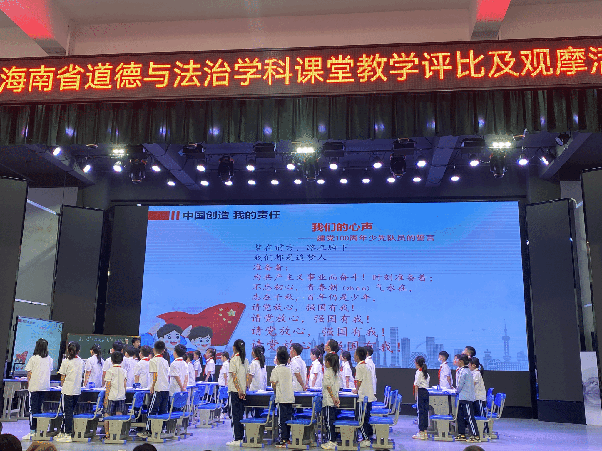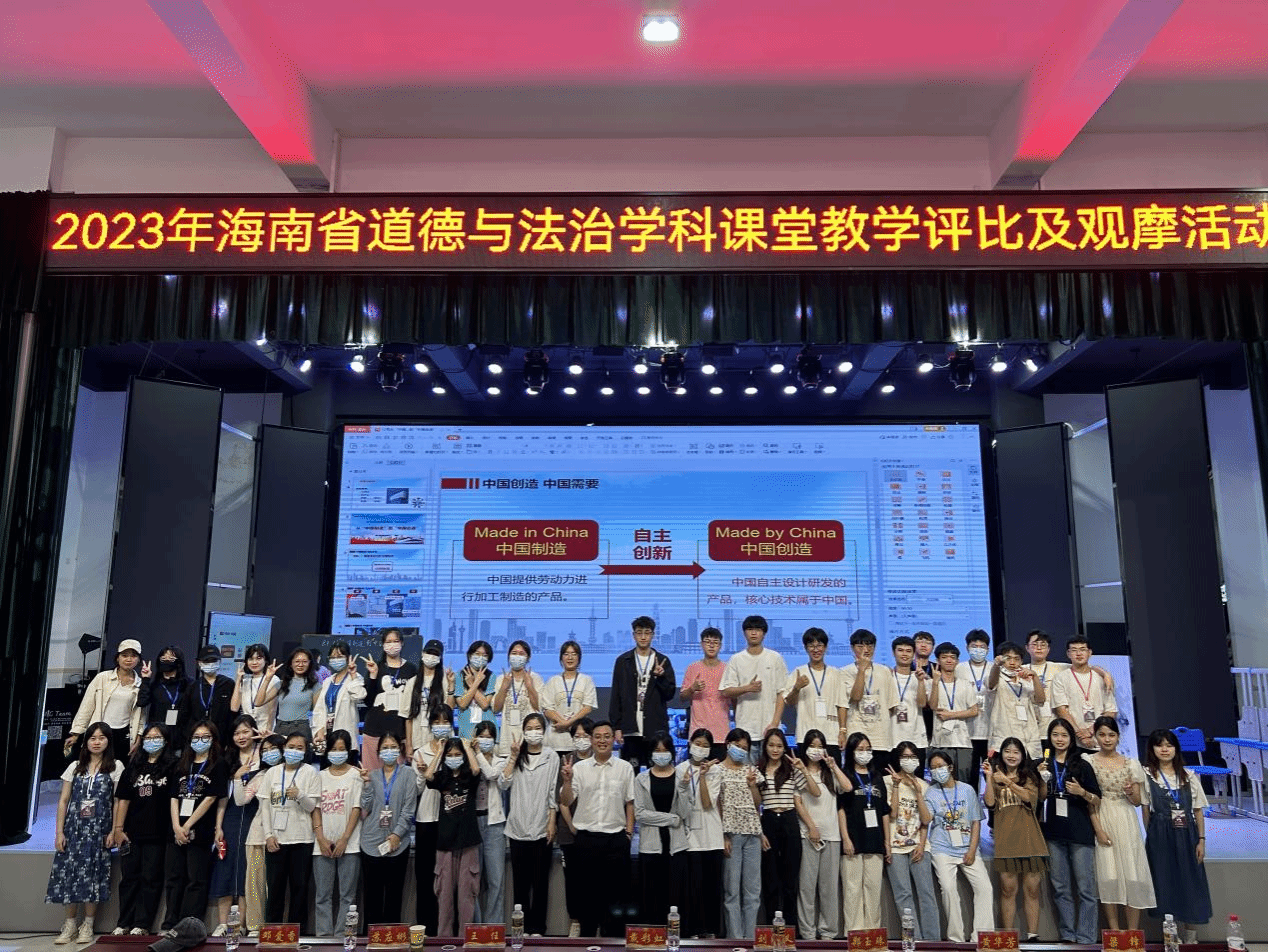 本次道德与法治学科课堂教学评比参赛老师为各市县选拔上来的19名优秀教师,他们各美其美美美与共,在比赛中充分展现了新时代青年教师的魅力与风采。思想政治教育班同学也借助这个难得的机会观摩了7堂精彩纷呈的思政课。如《白白的大米哪里来》以“做一做、演一演、说一说、写一写”四个活动出发,并以海口市琼山区的无人机喷洒农药结尾,让同学们了解到农民的辛苦,并告诫同学们要珍惜粮食、爱护粮食,做光盘行动的践行者。如《从“中国制造”到“中国创造”》以大风吹的小游戏为课堂导入,通过“聊聊生活中的“中国制造”、发现“中国制造”的另一面、走进“中国创造”以及未来,“中国创造”有我”四个活动贯穿本节课,通过举定安一小学生发明垃圾快速收集器的例子和设计文昌二小的少儿科技节,进一步拉近了科技与学生的距离,激发了同学们的爱国强国意识,增强科技兴国的责任感和使命感。如《网络新世界》主要从“互联网生活小调查、感受网络世界的精彩、网络规则你我知”三个主题切入,让同学们感受到互联网给现代社会带来的全方位的变革与发展,给我们的生活提供了便利,但同时也要了解网络的潜在风险,增强网络规则的意识。