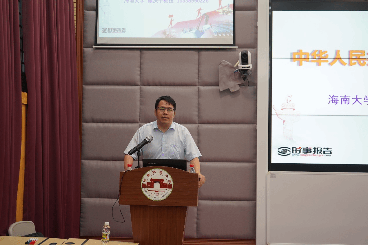 为深入学习贯彻习近平法治思想,提升我院学子法治意识,促进其对《中华人民共和国民法典》的理解, 2023年5月29日晚,马克思主义学院特邀海南大学颜洪平教授莅临我院作“中华人民共和国新版民法典解读”专题讲座。本次讲座由马院副院长钟婧主持, 22级全体同学参加。