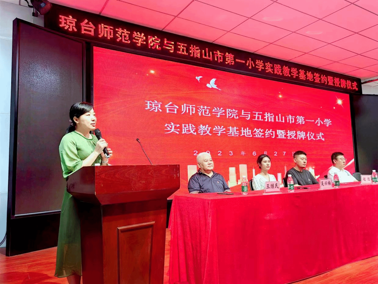在签约仪式上,五指山市第一小学党支部书记、校长王继民首先对戴彩虹院长一行的到来表示热烈欢迎,详细介绍了学校的发展状况和取得的成绩,希望与马克思主义学院在教科研上加强合作与交流,并表示将大力支持我校开展实践教学活动。戴院长对五指山市第一小学给予我院思想政治教育专业人才培养的大力支持表示感谢,期望双方加强交流合作,发挥各自优势,共同推动海南小学思政课高质量发展。
