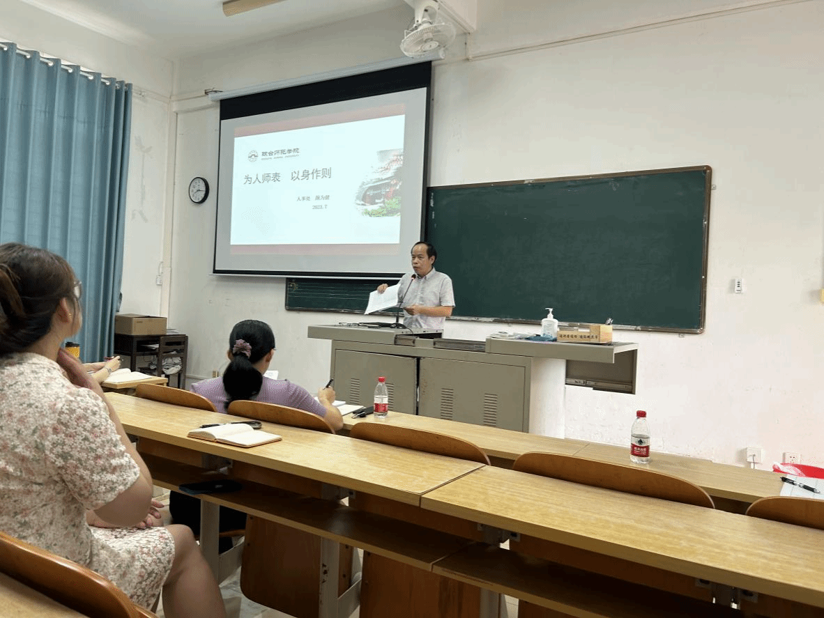 在师德师风专题学习时,马克思主义学院党委书记颜为健领学新时代高校教师职业行为十项准则,颜书记要求全体教职工要贯彻党的教育方针,不得在教育活动中及场合有损害党中央权威、违背党的路线方针政策的言行,恪尽职守,遵守法律法规,依法履行教师职责。