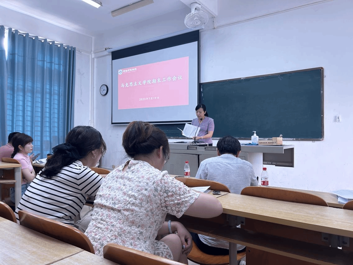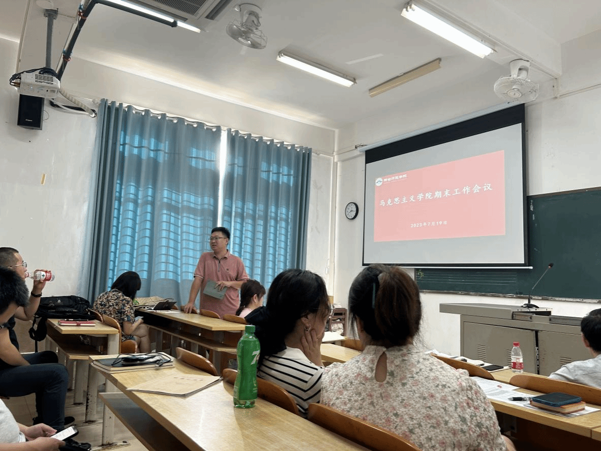 2023年7月19日下午,马克思主义学院在桂林洋校区培训楼207教室召开专题学习会暨2023年春季学期期末工作会议。学院全体教职工参加会议,会议由戴彩虹院长主持。