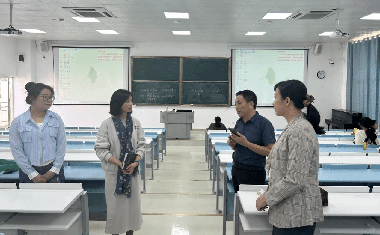 教学质量监测与评估中心覃晓辉主任、张梦影老师到公开课现场进行指导。马克思主义学院领导及听课教师与崔元君老师进行沟通交流。