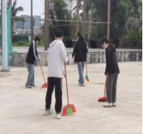 学生在昌炳社区进行清扫和观看学习节能减排环境知识