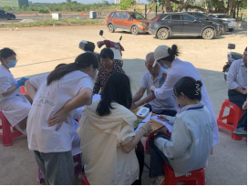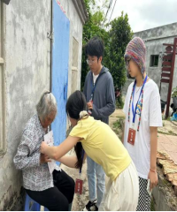 学生在迈进社区参加社区工作会议和协助社区人员开展体检活动
