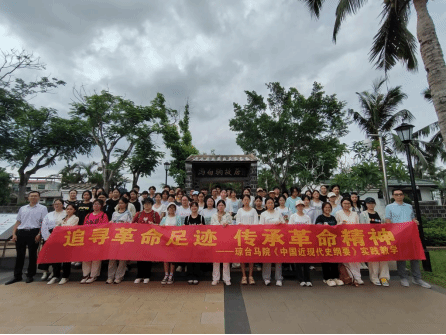 为进一步深化思政课教学改革,创新教学模式,将理论与实践紧密结合,切实提升思政课教学效果,6月3日下午,马克思主义学院《中国近现代史纲要》教研室组织2024思政教育1-2班85名学生前往琼崖红军云龙改编旧址和冯白驹故居开展实践教学活动,教研室全体教师参加。
