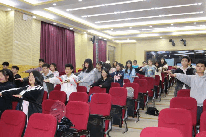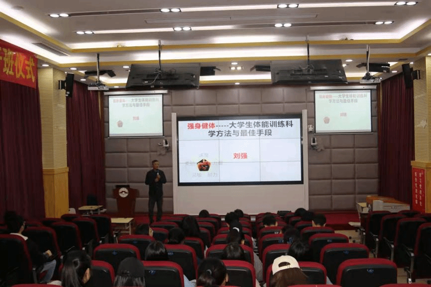 刘强教授给同学们介绍了身体形态,运动素质,一般力量和专项力量,合理顺练间隔原则等专业知识。他强调,体育锻炼与日常生活息息相关,可以通过体育锻炼来释放压力,增加体质,丰富文化生活。他指出,体育训练要掌握一定的训练方法,并给同学们介绍了卧推,坐姿划船,双臂下拉,仰卧起坐,半蹲的顺练方法并带领同学们进行正确的姿势训练。同时,刘强教授指出,以后两个学院可以进一步合作交流,也欢迎我院学子积极到体育馆健身房进行体育锻炼。