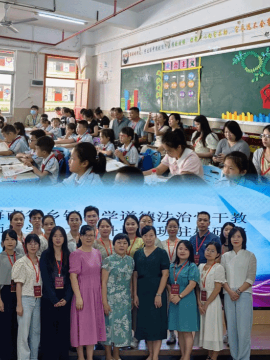 为进一步了解我省小学道德与法治课程的教学情况更好提升我院思想政治教育专业人才培养质量发挥马院服务海南基础教育的作用,在马院承办的2023年海南省乡镇小学道德与法治骨干教师教学能力提升培训班赴小学跟岗研修期间,马克思主义学院院长戴彩虹带领思想政治教育系黄丽燕主任、崔元君老师于9月20日深入一线走进小学道德法治教学教研课堂在课堂上看在课堂上听与一线的老师一起研讨交流
