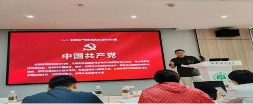 集体备课会分两个阶段,第一阶段为专章说课阶段,我院青年教师廖子清进行第三章坚持党的全面领导的说课展示。第二阶段为自由交流阶段,我院教师针对说课的导论至前五章进行了交流讨论。