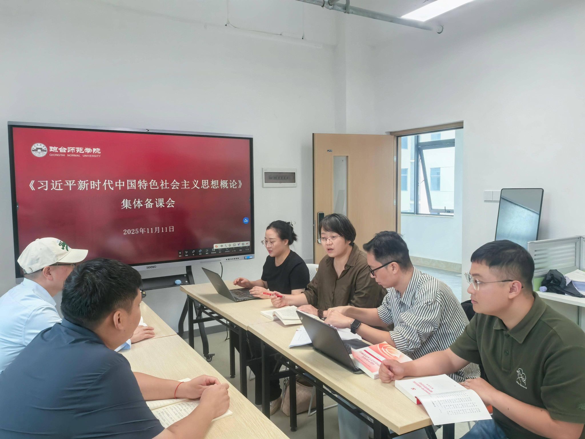 廖子清、阳小勇、曾虹、王海玲四位任课教师分别进行了示范授课。之后,还传达学习了习近平总书记在听取海南省委和省政府工作汇报时的重要讲话精神,各位老师一致表示,要深刻领悟习近平总书记重要讲话精神实质、核心要义和实践要求,真抓实干、奋勇争先、开拓创新,坚决把习近平总书记的殷殷嘱托和谆谆教诲转化为做好思政课教学工作,为谱写中国式现代化海南篇章贡献琼台力量。