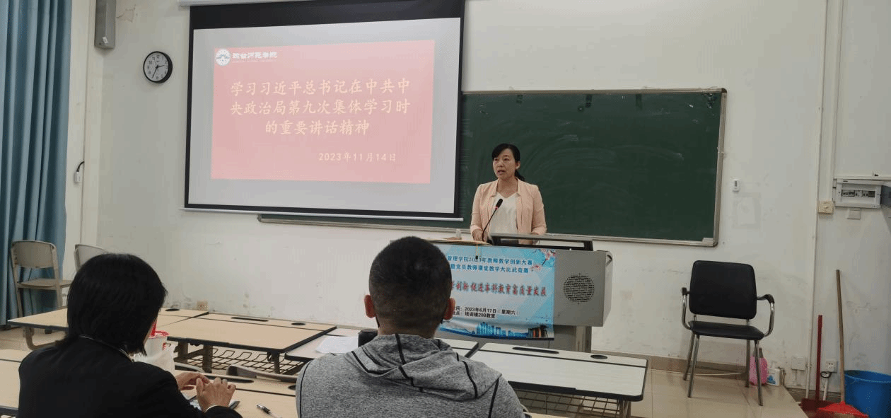 11月14日下午,马克思主义学院在208教室召开全体教师工作会,传达学习了习近平总书记在中共中央政治局第九次集体学习时的重要讲话精神,会议由戴彩虹院长主持。