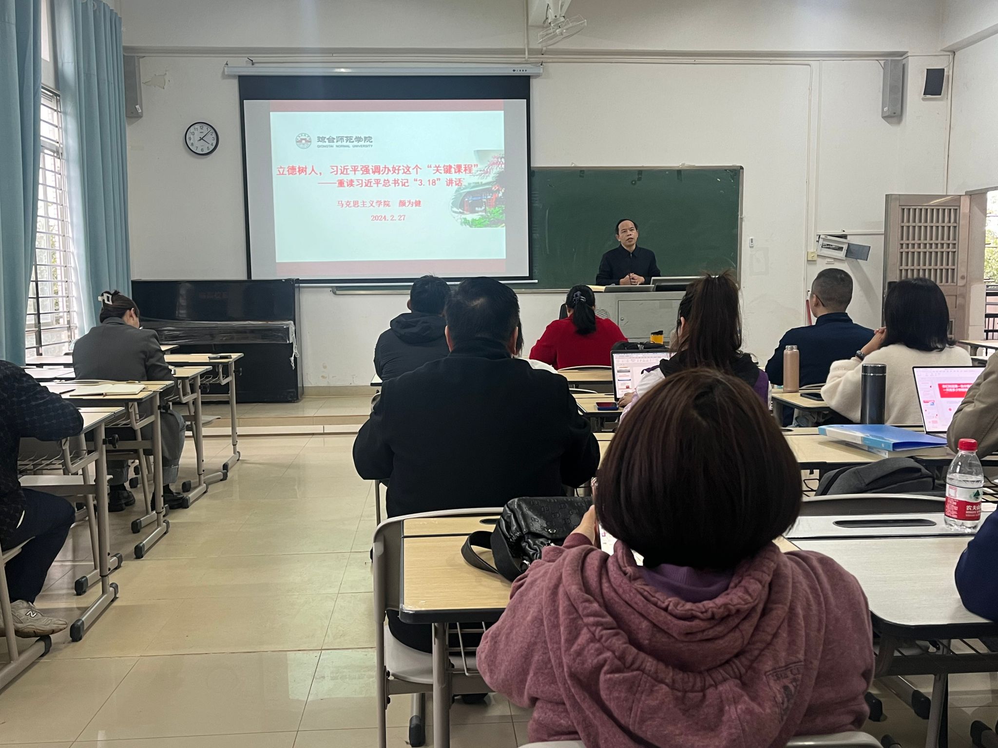 为纪念习近平总书记在学校思想政治理论课教师座谈会上的重要讲话发表周年,2月27日,马克思主义学院召开全体教职工大会,专题学习习近平总书记“3.18”讲话精神,并对马克思主义学院工作进行再部署、再动员。