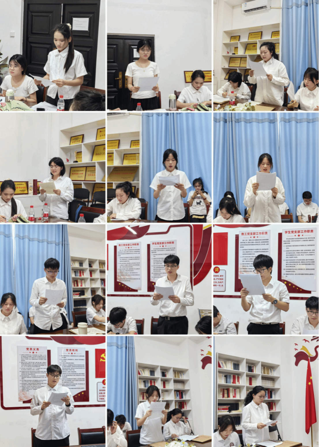 会议开始,全体师生合唱《义勇军进行曲》,赵乐然同志宣读本期发展对象名单,由发展对象逐一汇报对党的认识,入党动机,本人履历,家庭成员和主要社会关系情况以及其他需要向党组织说明的问题,入党介绍人对他们的培养和教育考察情况进行了介绍并表态。