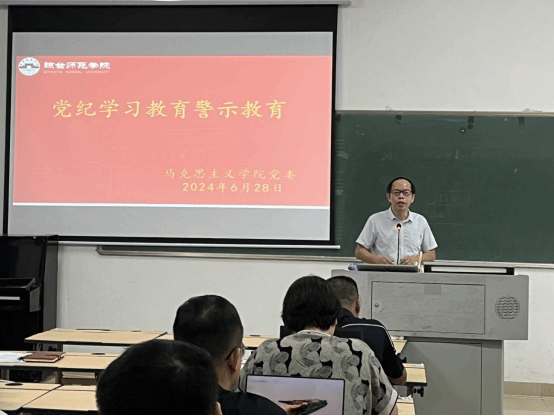 为持续推动党纪学习教育深入开展,6月28日,马克思主义学院召开警示教育大会。会上,全体党员观看警示教育片。警示教育片以鲜活真实的党员干部违纪违法典型案例为蓝本,出镜对自身违纪违法行为进行忏悔,引导全体党员干部从典型案例中吸取深刻教训,扣好廉洁从政“第一粒扣子”。